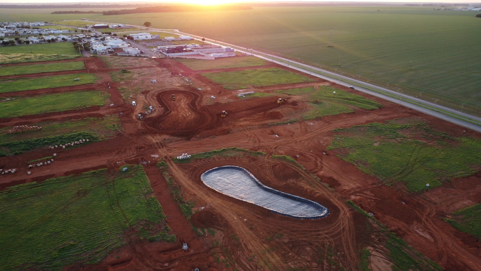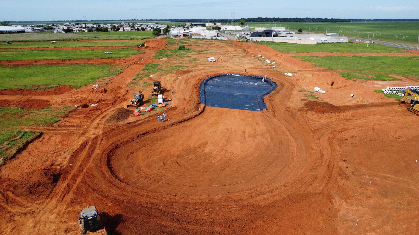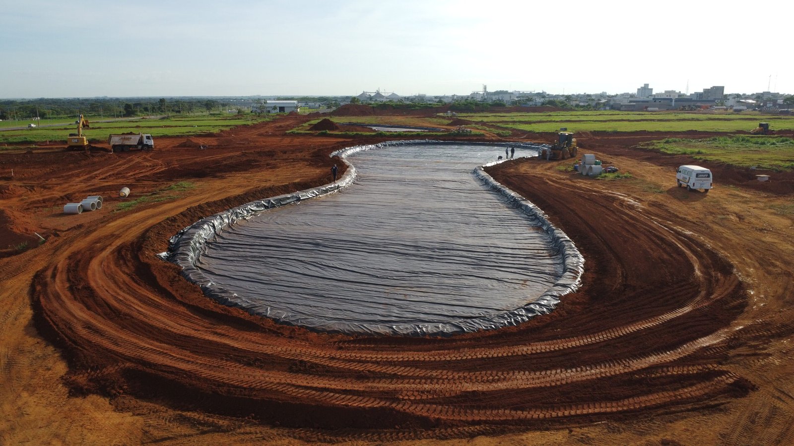 Projeto executado com GeoLagos 1,00mm, garantindo impermeabilização segura e alta resistência para estrutura hídrica de médio porte.
