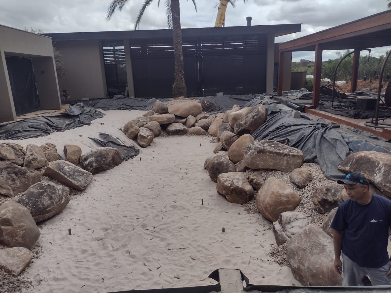 Executada com GeoLagos 1,20mm, a piscina natural recebeu sistema de impermeabilização de alto padrão, garantindo máxima resistência, segurança estrutural e durabilidade prolongada. Em apenas 2 dias de obra, realizamos aplicação técnica precisa, com controle rigoroso de soldas e acabamento refinado.